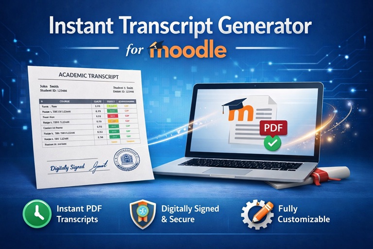 Transform your Moodle LMS into a comprehensive academic records system with our newly developed Professional Transcript Generator plugin. Designed to deliver institution-quality transcripts in seconds, this tool is a must-have for any educational institution looking to streamline their documentation process.